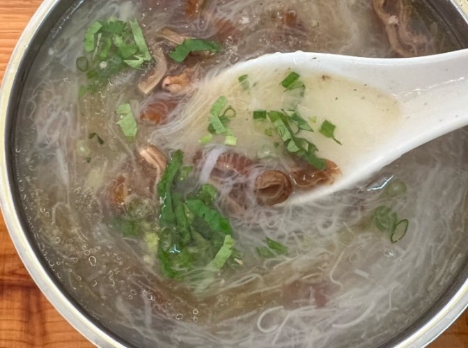 ✘ 湯頭渾濁油膩 (骨渣未濾淨)