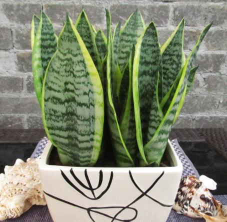 白脈虎尾蘭 (Sansevieria trifasciata 'Bantel's Sensation') 葉面有細緻的銀白色縱向條紋。 ⭐ (困難) 側芽分離 生長慢側芽少,分株機會珍貴,動作要更細膩。
