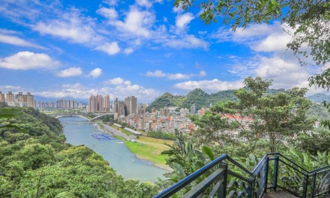 • 無敵視野: 爬升一陣子後,步道旁開始出現視野開闊點。最重要的當然是「山頂觀景臺」!雖然海拔僅152公尺,但因為位置絕佳,360度的視野簡直無敵!新店溪蜿蜒流過腳下,碧潭吊橋像條項鍊般橫跨其上,遠處是北二高車流、新店市區,甚至天氣好時能遠眺臺北101。我第一次爬上來時,真的忍不住「哇!」了出來(雖然喘得要命)。另一個很棒的點是「朝宗亭」,這裡看碧潭的角度更經典,很多攝影師喜歡來這裡取景。